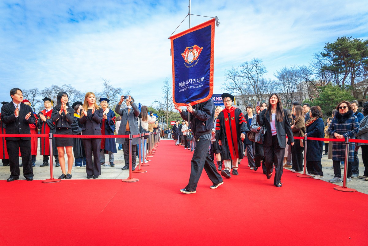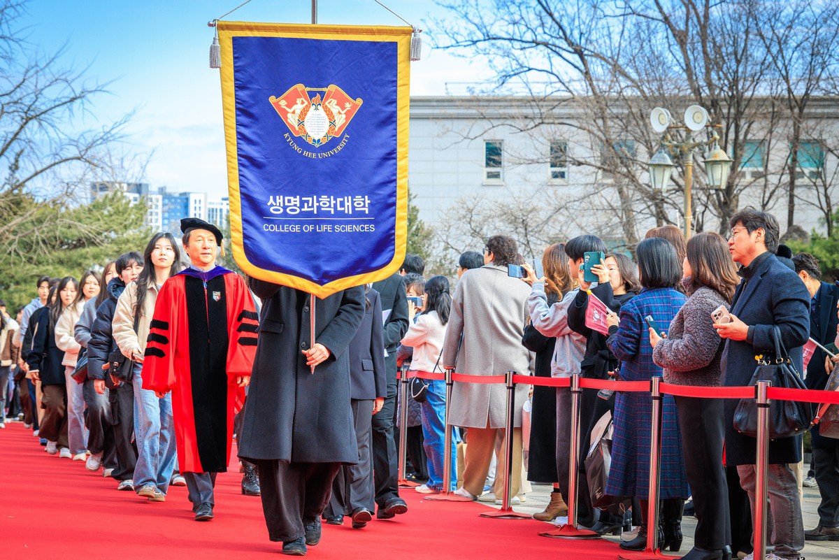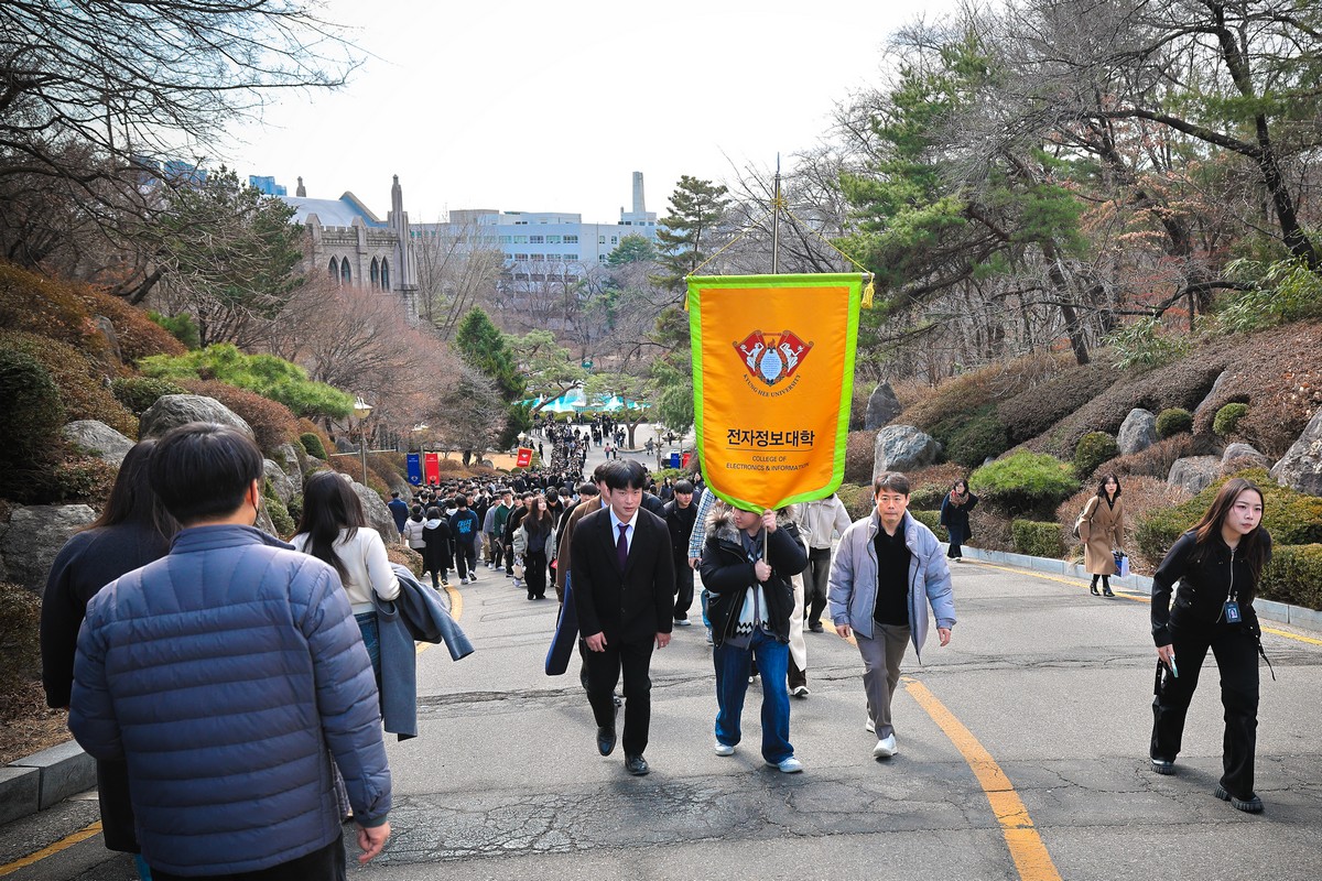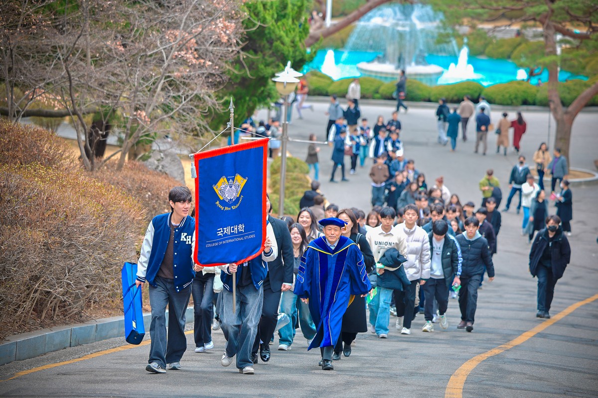 교시탑에서 출발하여 중앙로를 지나 레드카펫이 깔린 평화의 전당을 향해 단대기 행렬이 이어진다. 25개 단과대학 6,067명의 신입생이 경희인으로서 첫걸음을 떼는 경희로운 순간이다. 2013학년도부터 시작된 입학식 단대기 행렬은 경희인으로서 출발을 알리는 상징적인 의식이다.