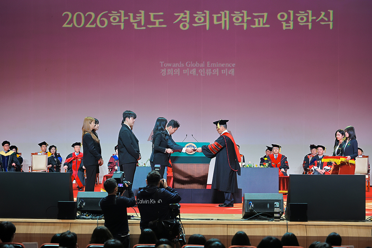 2026학년도 입학식이 지난 2월 27일(금) 평화의 전당에서 열렸다. 신입생들은 재학생과 교수, 직원들의 환영과 축하 속에 ‘학문과 평화의 전당’ 경희에서 새로운 여정을 시작했다.